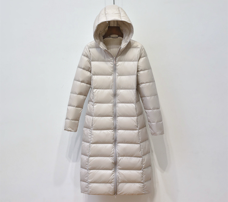 Lightweight Hooded Long Below-the-knee Slim-fit Coat
