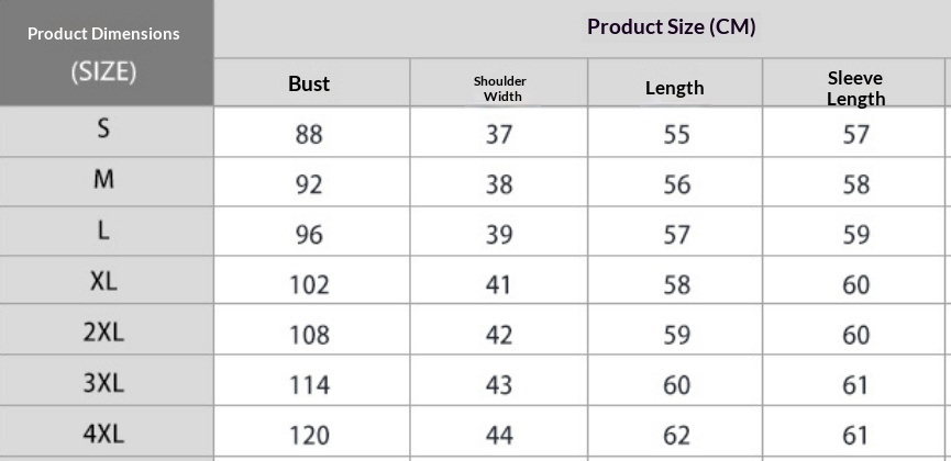Sizes: M, L, XL, 2XL, 3XL, 4XL