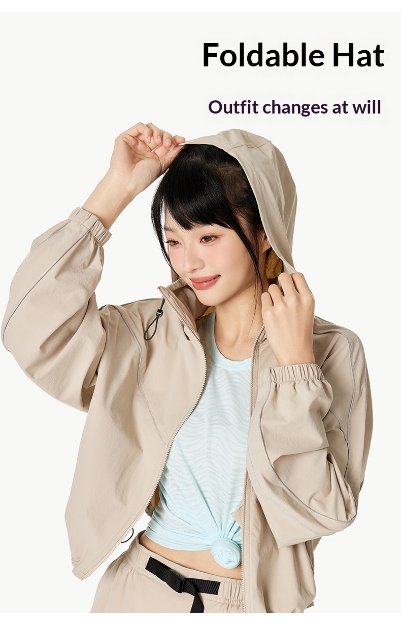 Women's Short UPF200 Sun-Protective Clothing Breathable Hooded Lightweight Jacket